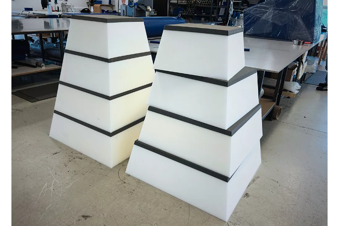 Pyramide skumplinten byr på en solid skumkjerne og en robust PVC-overflate, som gjør den komfortabel og sikker i bruk. De sterke sømmene og materialene sikrer lang levetid.