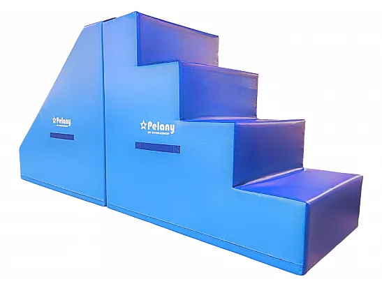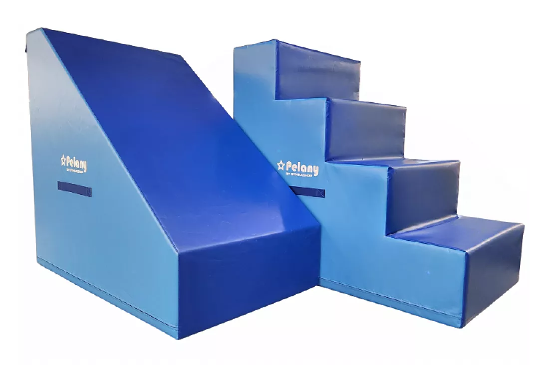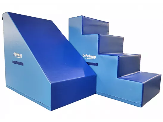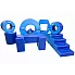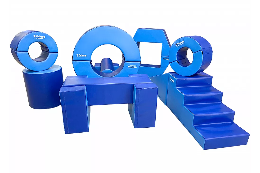 Du får: Trapp, kiler som du kan bruke som sklie, mutter, sirkler i forskjellige størrelser, sylinder i forskjellige størrelser og matte.