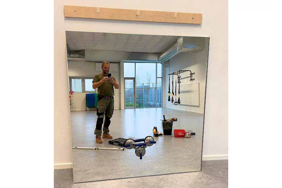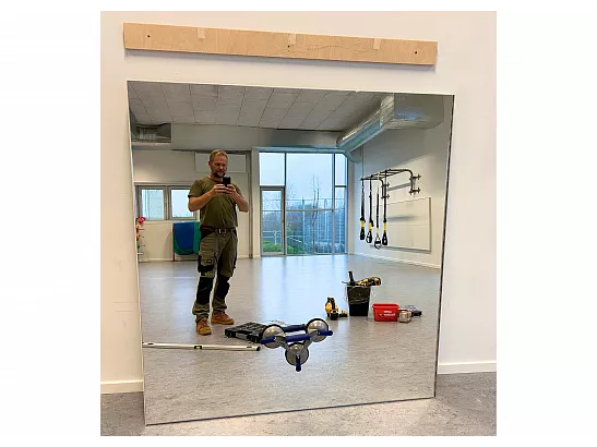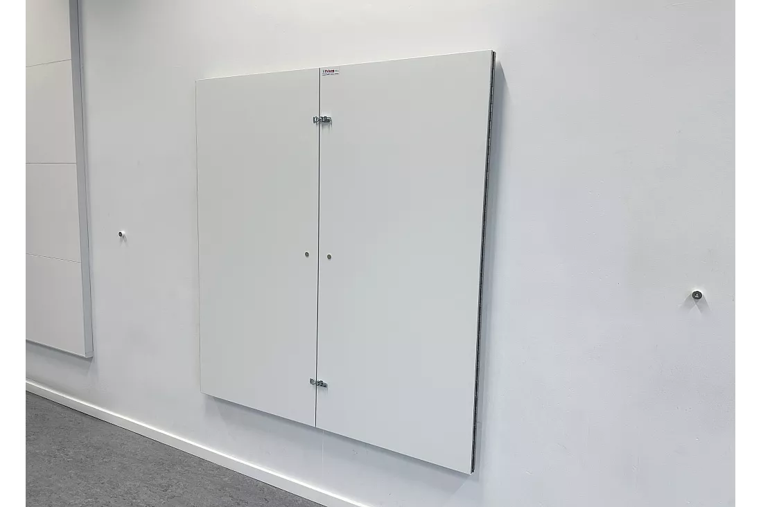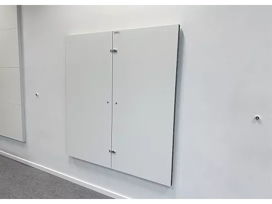 Vegghengt speilskap med mulighet for åpne og lukke egenskaper. Beskytter også glasset når sidespeilene er lukket igjen.