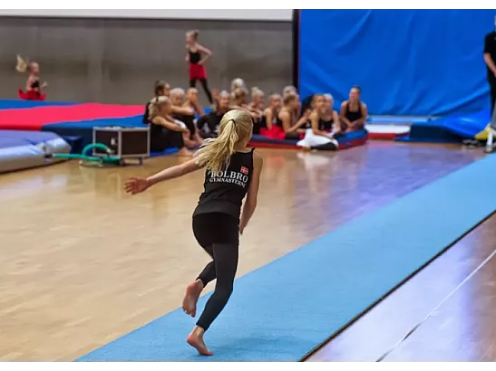 Matten er lett og rulle opp og legger seg flatt med gulvet når man legger ut løpebanen. Tar liten plass ved lagring.