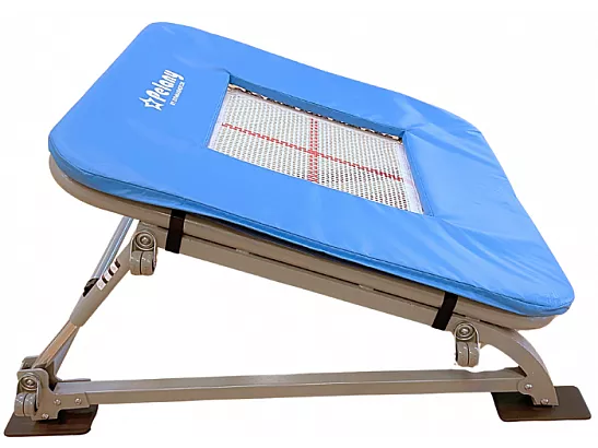 Minitrampoline EAGLE XS – Barnetrampoline fra Pelany Designet for å oppfylle alle krav og forventninger til den perfekte barnetrampolinen. Minitrampoline EAGLE XS fra Pelany kan høydejusteres i skråfunksjonen/hellingen, slik at hoppeffekten kan reguleres – en stor fordel når man trener med barn og nybegynnere. En bratt helling på en minitrampoline endrer hoppets dynamikk betydelig sammenlignet med en mindre bratt helling. Når man justerer trampolinen, er det viktig å tenke på formålet: Skal hopperen nå langt frem, rotere raskere eller trene kontroll og høyde? En liten endring i vinkel kan gjøre stor forskjell for både sikkerhet, funksjon og utvikling i treningen.
