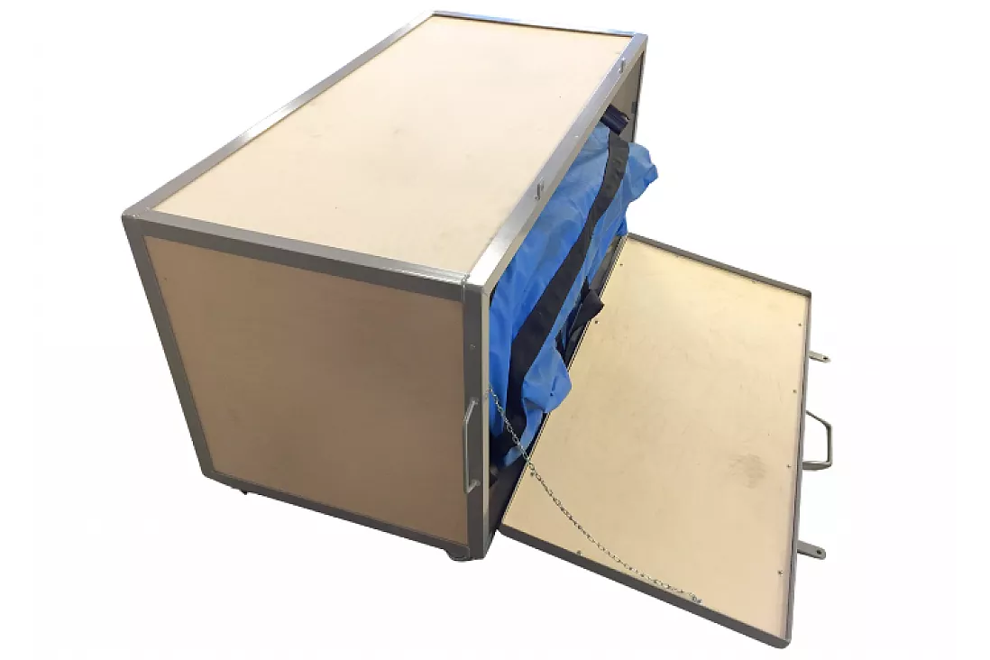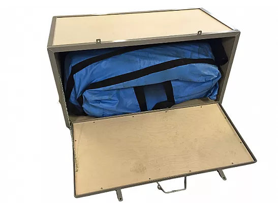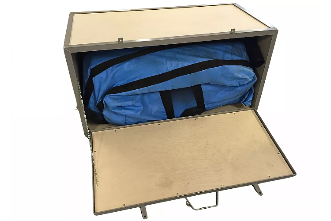 Kraftig stålramme med sider av 12 mm kryssfiner plater.