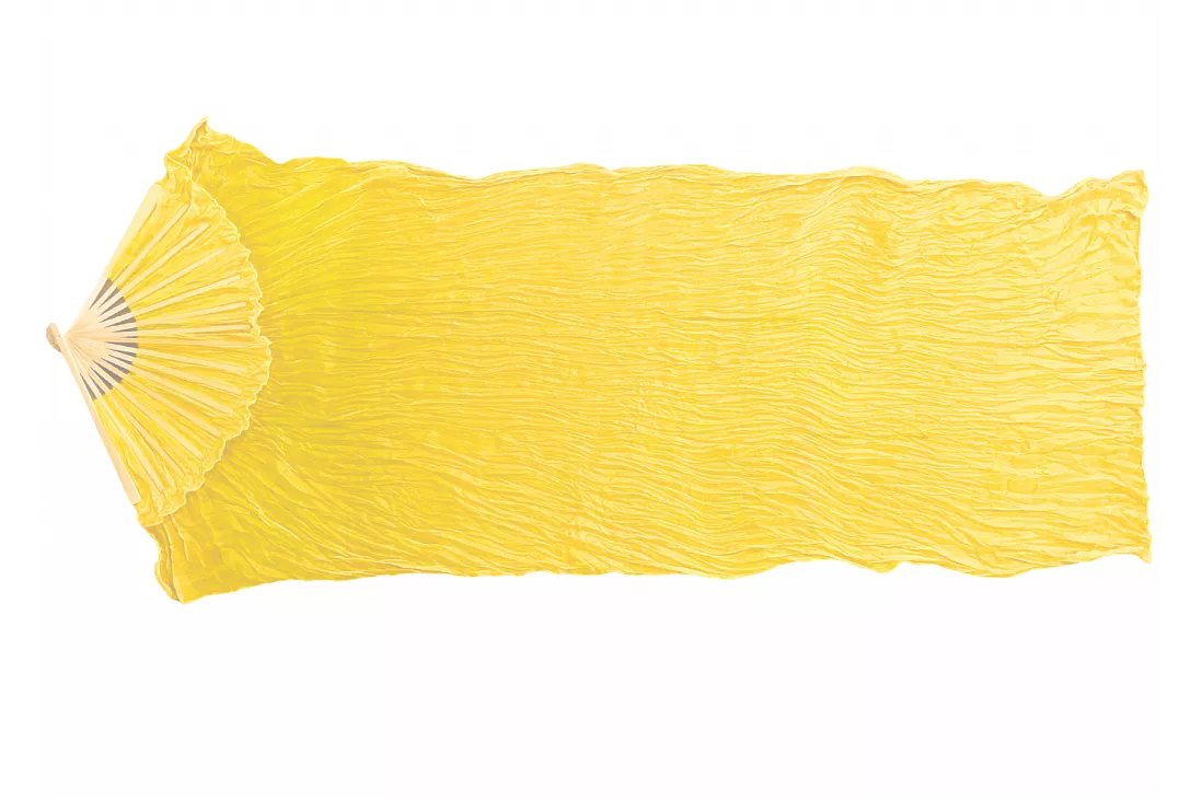 Viftevimpelen er laget av 170 x 80 cm lett og fleksibelt silkestoff, montert på en 55 cm bred vifte laget av bambustre.