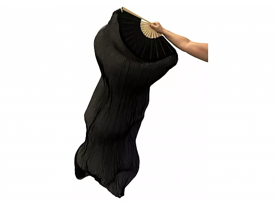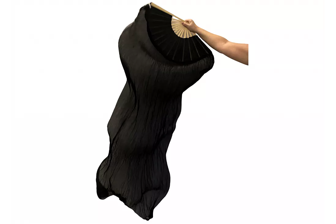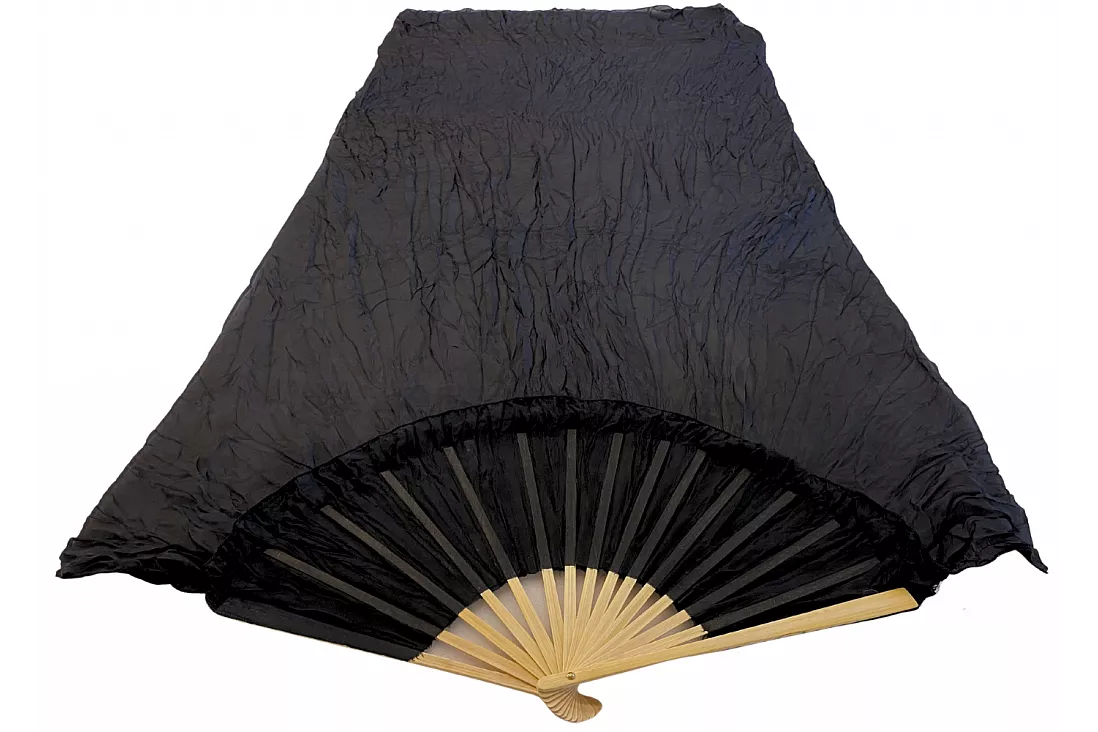 Viftevimpelen er laget av 170 x 80 cm lett og fleksibelt silkestoff, montert på en 55 cm bred vifte laget av bambustre.